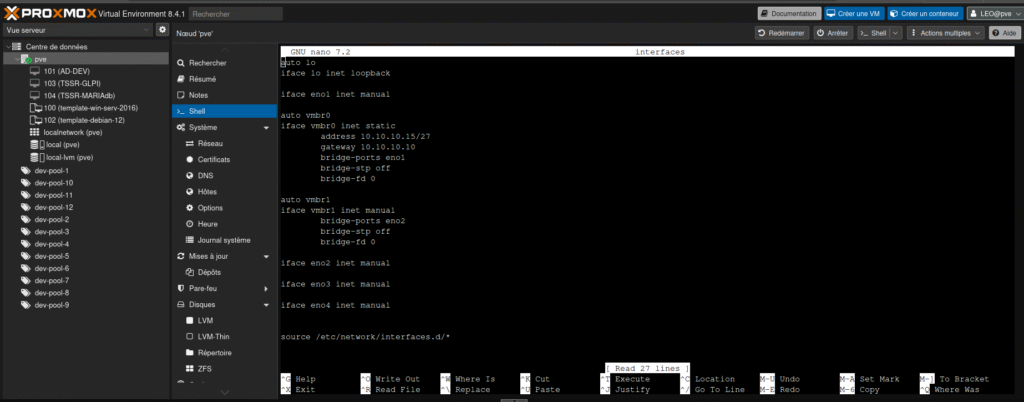 Raccord de l’ancien réseau au nouveau pour assurer la communication avec les VM