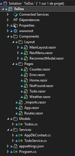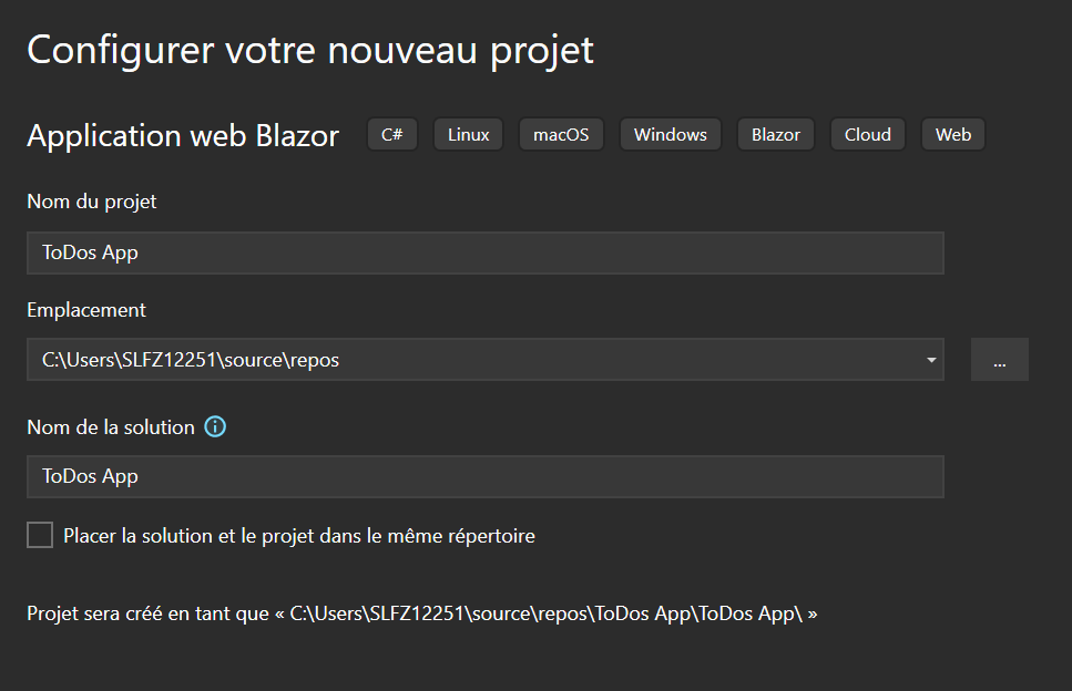 Création du projet des ToDos dans Visual Studio