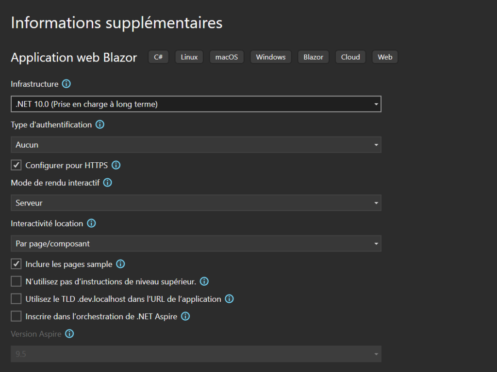 Ci-dessus: écran de sélection du modèle, ici « Application Web Blazor »