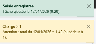 - la charge est supérieure à 1 sur la journée donnée