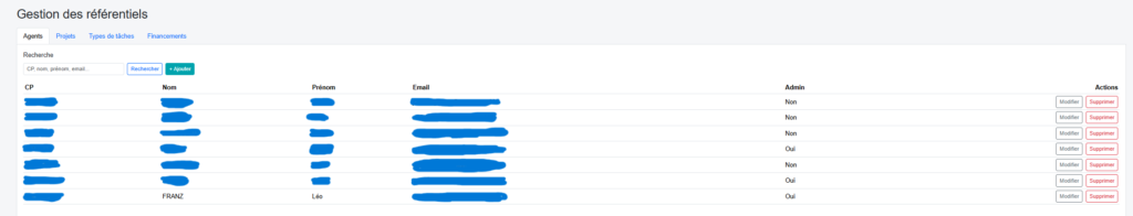 Onglet de gestion des agents
