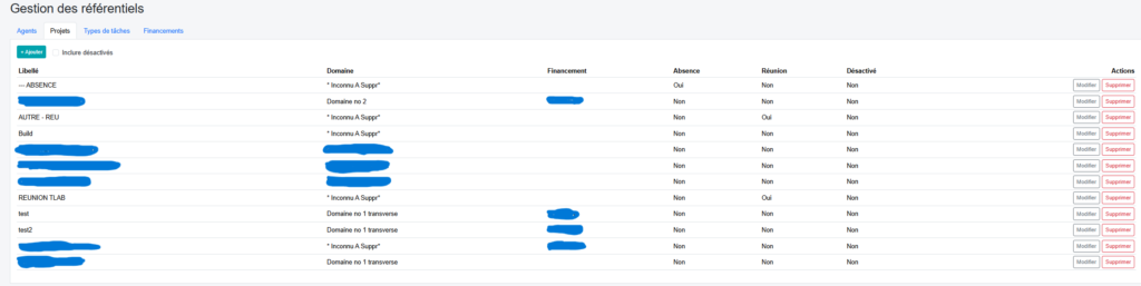 Finalisation de la page de gestion des référentiels